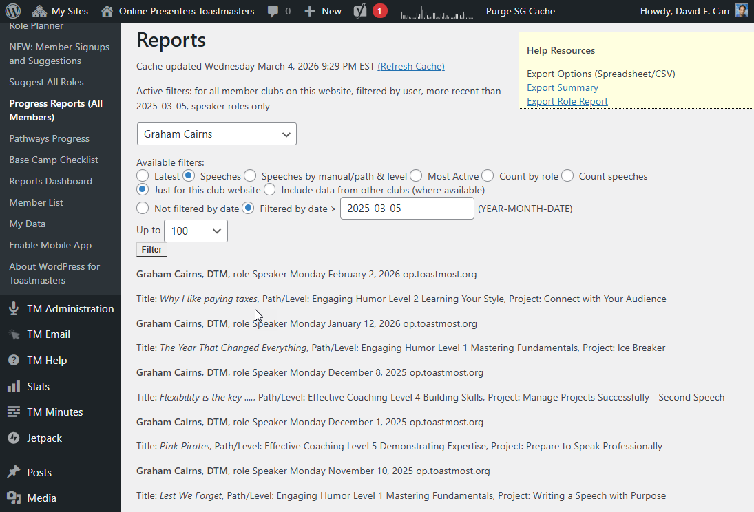- Toastmasters Member Access Sidebar Widget Displays member signup opportunities, profile links, etc.