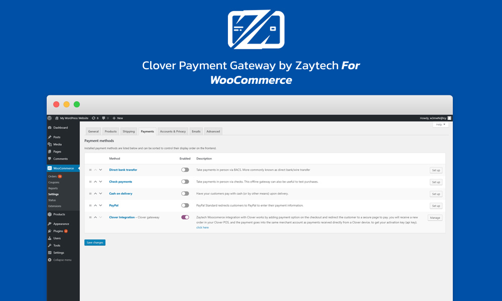 With Clover Payment Gateway by Zaytech for WooCommerce you can use your Clover POS to accept payments from your Woo-Commerce Shop